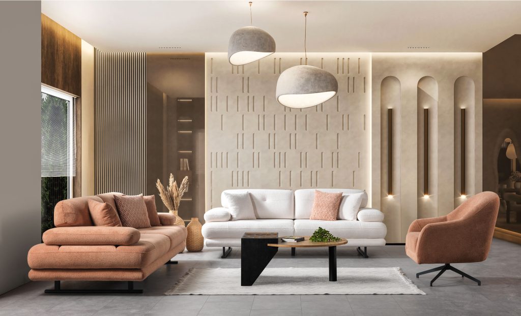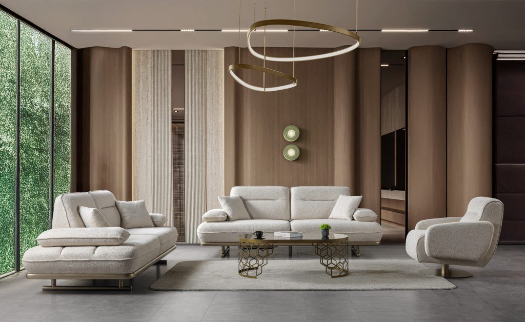 Takımın en belirgin özelliği, derin kapitone işçiliği ve düğme detaylarıdır. Sırt ve kolçak bölümlerinde yer alan simetrik kapitone uygulama, ürüne hacimli ve gösterişli bir görünüm kazandırır. Aynı yükseklikte tasarlanmış kıvrımlı kolçak ve sırt formu, Chester tasarımının klasik siluetini oluşturur. Bu güçlü tasarım dili, mekâna aristokrat bir hava katarken aynı zamanda sıcak ve davetkâr bir ambiyans katar.