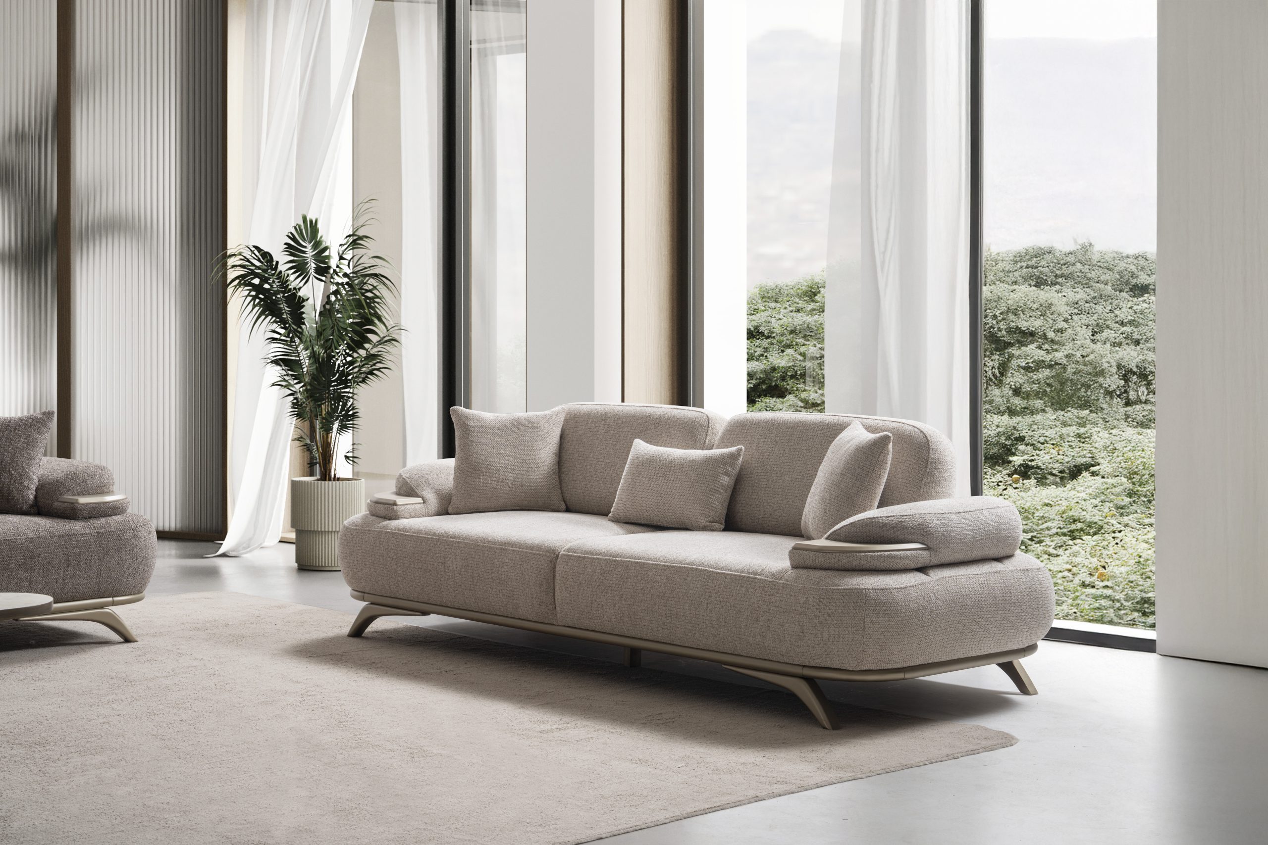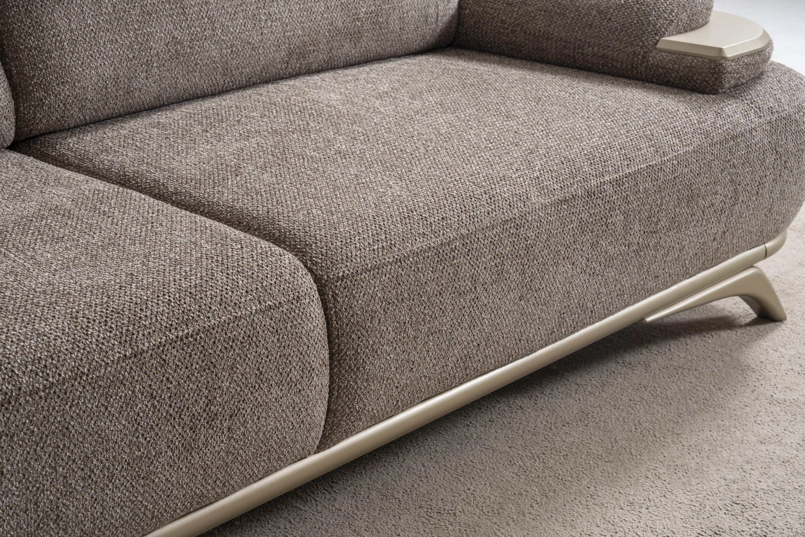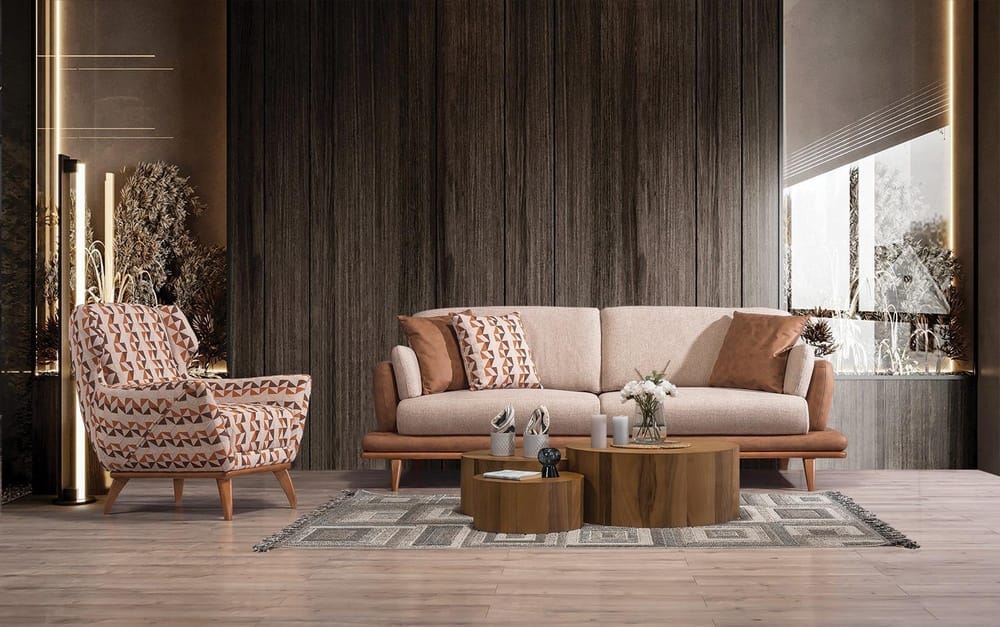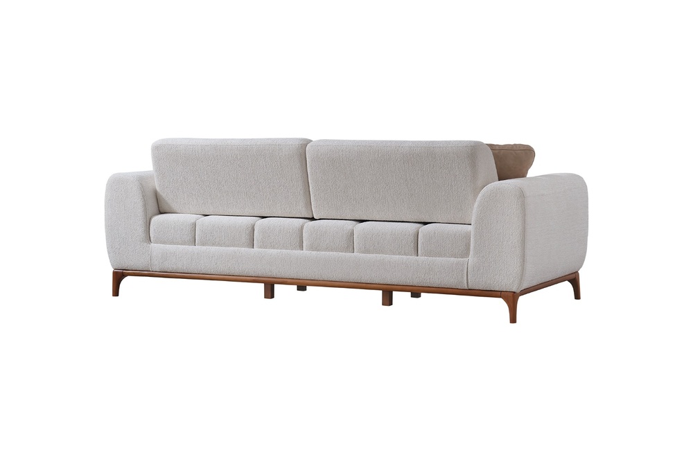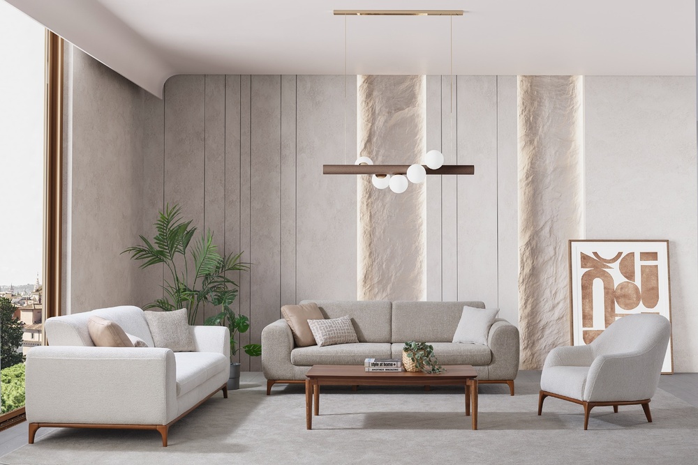 Verona Koltuk Takımı, güçlü iç iskelet yapısı ve dayanıklı malzeme kalitesi ile uzun ömürlü kullanım hedeflenerek üretilmiştir. Sağlam gövde yapısı, formunu uzun yıllar koruyan sünger sistemi ve kaliteli kumaş kaplaması sayesinde yoğun kullanımda bile performansını kaybetmez. Modern çizgilere sahip kolçak tasarımı ve estetik ayak detayları koltuk takımına zarif bir görünüm kazandırırken aynı zamanda yaşam alanlarına ferah ve düzenli bir atmosfer katar. Yerden yüksek ayak yapısı temizlik kolaylığı sağlarken mekâna daha hafif ve modern bir görünüm sunar.
