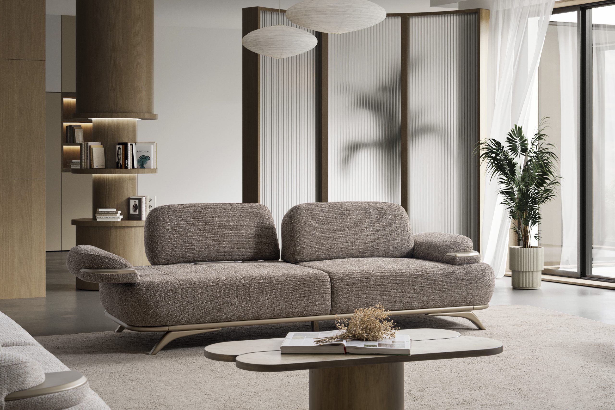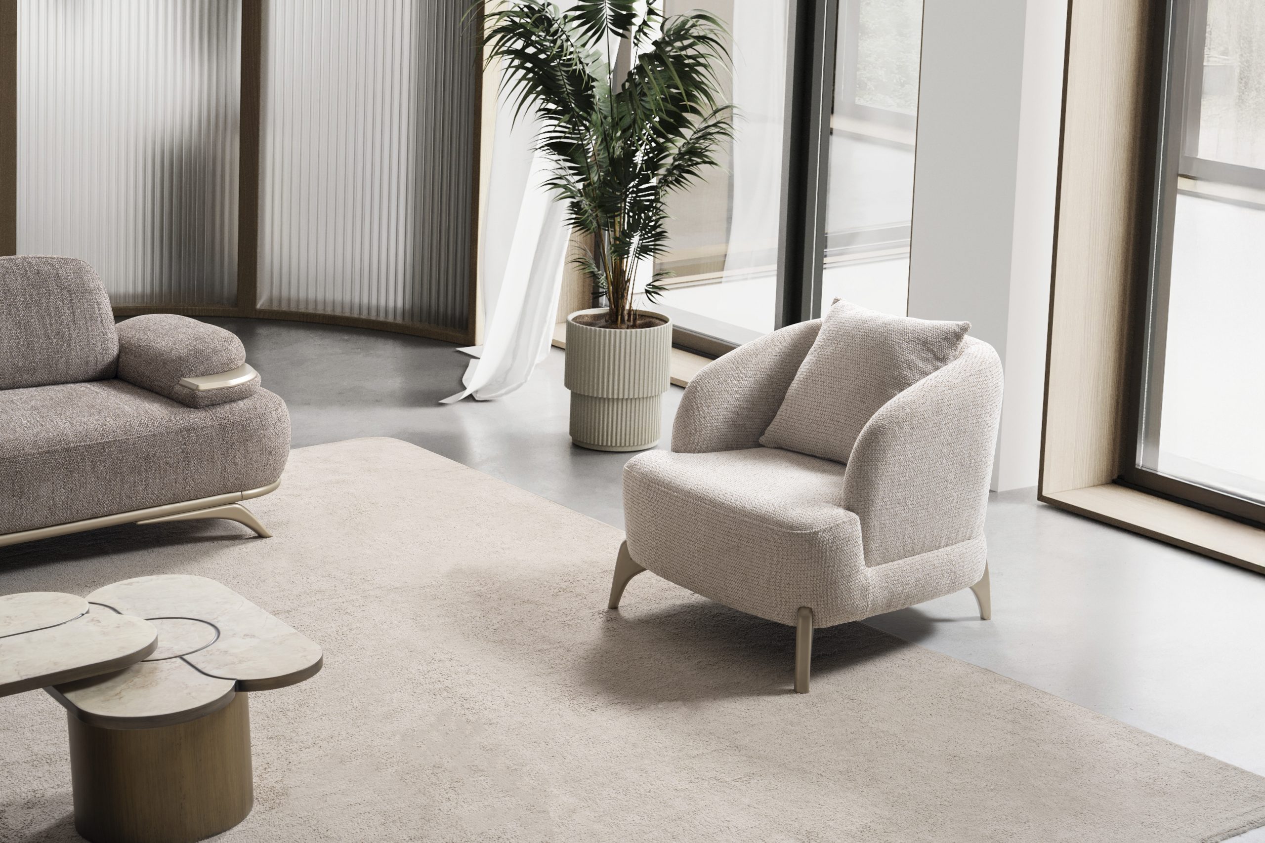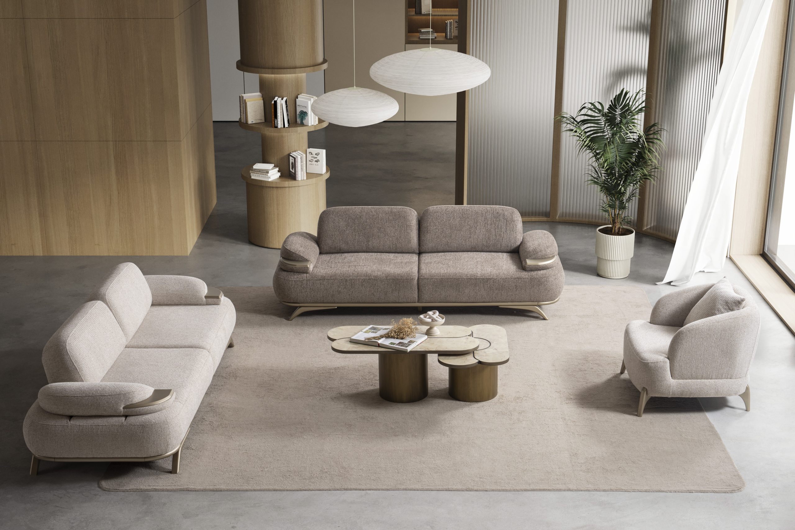 Verona Koltuk Takımı, güçlü iç iskelet yapısı ve dayanıklı malzeme kalitesi ile uzun ömürlü kullanım hedeflenerek üretilmiştir. Sağlam gövde yapısı, formunu uzun yıllar koruyan sünger sistemi ve kaliteli kumaş kaplaması sayesinde yoğun kullanımda bile performansını kaybetmez. Modern çizgilere sahip kolçak tasarımı ve estetik ayak detayları koltuk takımına zarif bir görünüm kazandırırken aynı zamanda yaşam alanlarına ferah ve düzenli bir atmosfer katar. Yerden yüksek ayak yapısı temizlik kolaylığı sağlarken mekâna daha hafif ve modern bir görünüm sunar.
